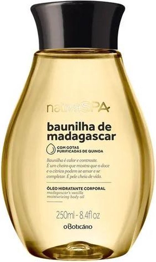 Met een innovatieve en verrassende textuur, laat de olie je huid achter met een fluweelachtige en zijdeachtige aanraking. Gebaseerd op 100% plantaardige basis, houdt de lichaamsolie de huid gehydrateerd door een beschermende film. Het heeft de werking van gezuiverde Quinoa-druppels om diep te hydrateren, de collageenproductie te verhogen en verlies van huidelasticiteit te voorkomen. De Madagascar Vanillie geur brengt een geur die laat zien dat de zoete en citrusvruchten van elkaar kunnen houden en elkaar kunnen aanvullen, waardoor de huid geurig en vol leven wordt.